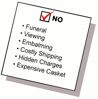 The above services represent all that is necessary for a complete, simple cremation. Our fees are all inclusive by region and No additional fees or charges are needed to complete the arrangement. If desired, other options such as formal urns, vaults and memorial products are available for additional cost, but are not necessary.